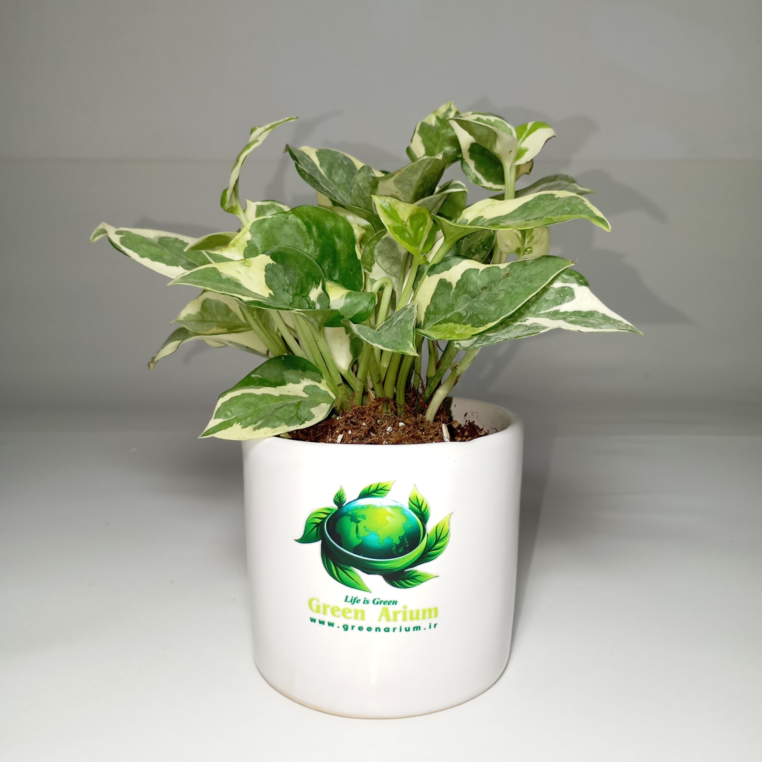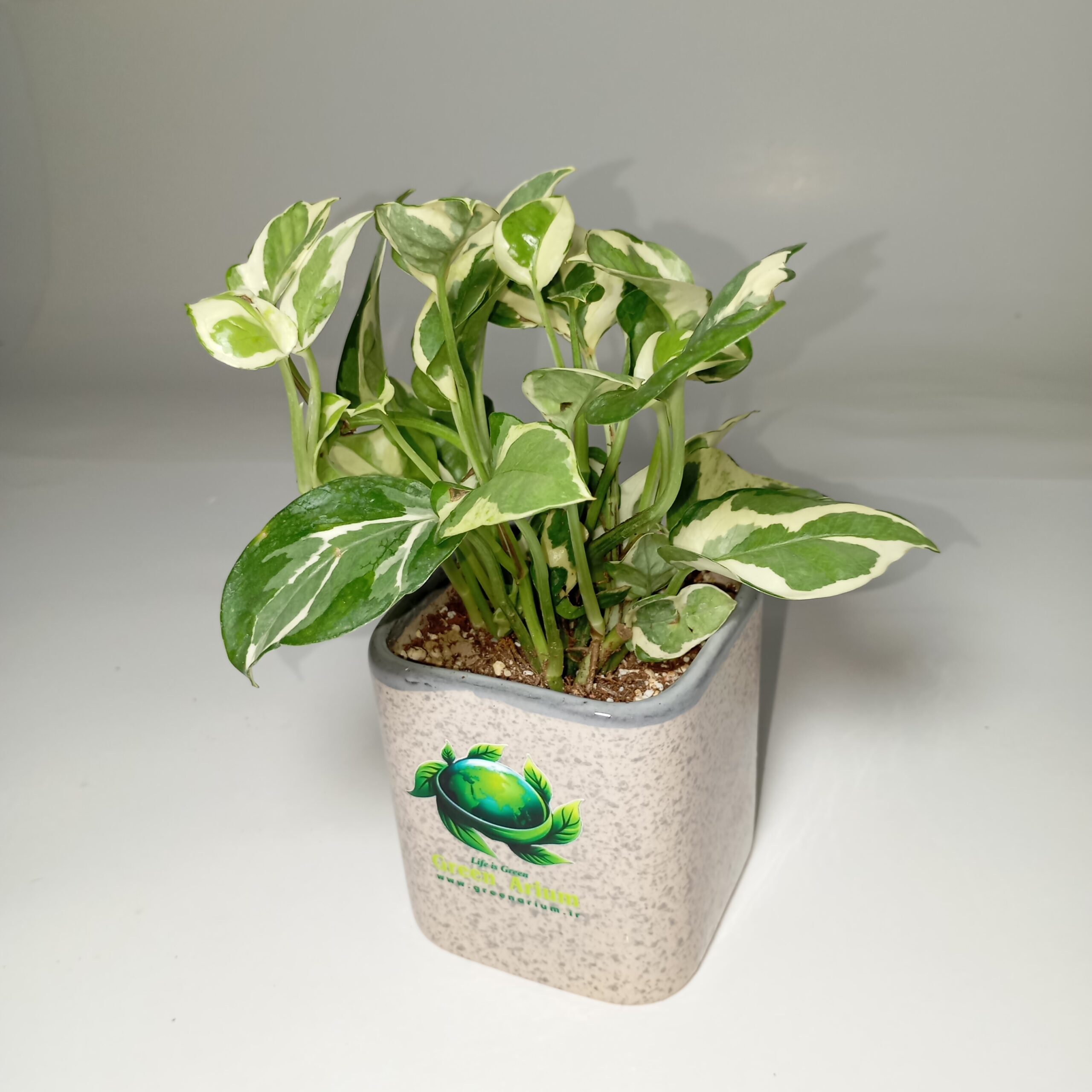 گلدان فانتزی پتوس ارتشی ، مناسب طراوت بخشیدن به میز کار یا میز تحریر ، کتابخانه یا حتی میز غذاخوری و آشپزخانه شما